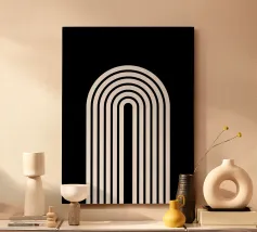 Questo straordinario design proveniente dalla mostra Bauhaus del 1919 combina la geometria minimalista con un'estetica moderna e senza tempo. La precisa disposizione delle linee su uno sfondo nero profondo crea un affascinante effetto tridimensionale. Perfetto per prodotti come murales, magliette, tazze o cuscini, questo motivo porta l'iconico stile Bauhaus nella vostra casa. Un must per gli amanti dell'arte moderna, del design grafico e della decorazione elegante.