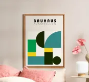 Un design Bauhaus minimalista e geometrico che riflette l'estetica della modernità. Linee pulite, colori decisi e forme equilibrate creano un gioco armonioso di struttura e creatività. Quest'arte ricorda l'iconico movimento Bauhaus, che armonizzava funzionalità e bellezza: un'espressione senza tempo del design moderno.