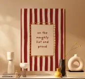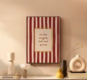 Aggiungete un po' di umorismo impertinente alle vostre vacanze con questo poster tipografico giocoso. L'audace affermazione "sulla lista dei cattivi e orgoglioso" è riportata in un affascinante stile letterato a mano all'interno di una cornice smerlata color avorio. Lo sfondo è caratterizzato da suggestive strisce verticali rosse e crema, che conferiscono all'opera un'estetica vibrante e retrò da carnevale o da bastoncino di zucchero. Questa stampa d'arte è perfetta per chi ama un po' di irriverenza e divertimento durante il periodo natalizio. Scaricate questo file digitale di qualità superiore, 7000×5000 pixel, 300 dpi, per un pezzo di arte digitale eccellente e di alta qualità.