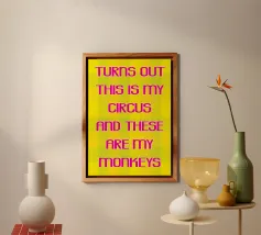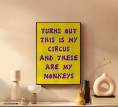 Un promemoria spensierato per lasciar andare ciò che non è tuo e che devi sistemare: Not My Circus, Not My Monkeys. Questo detto classico in una tipografia semplice e moderna porta umorismo e calma negli uffici, nei salotti o negli spazi creativi, fondendo la saggezza senza tempo con lo stile quotidiano.