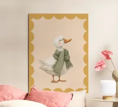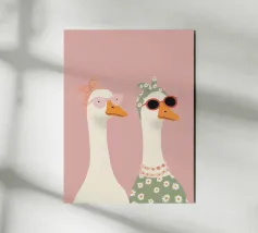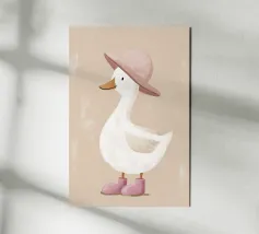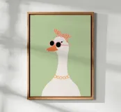 This stylish goose illustration brings playful elegance to any space. Featuring a graceful long-necked goose wearing round blush sunglasses and a patterned headscarf, this artwork blends vintage charm with a modern, minimalist feel. Perfect for nurseries, children’s bedrooms, or eclectic gallery walls, this fashionable goose print adds personality, humor, and a trendy statement to your décor. Beautiful displayed on its own or paired with coordinating animal prints for a cohesive and stylish collection.