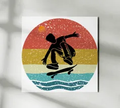 Scatenatevi sul surf con questo fantastico skeleton rider! Questo disegno raffigura uno scheletro che sfreccia con stile su un'onda colorata. È un mix perfetto di cultura balneare e un tocco di macabro. Prendete questo design radicale per la vostra prossima avventura in spiaggia (o semplicemente per avere un aspetto cool).