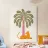 Un disegno giocoso con un grosso felino arancione (leonessa) che riposa sotto una palma.