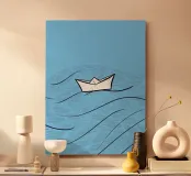 paper boat on waves alluminio dibond