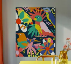 Pappagallo Cacatua Uccello Animale Tropicale Botanico Pianta Boho alluminio dibond