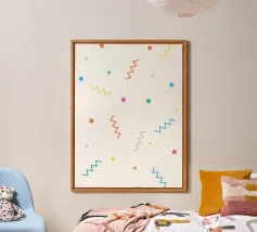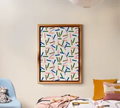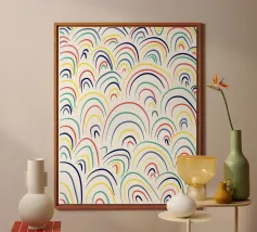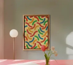 Questa opera d'arte digitale a linee parallele colorate è un pezzo di grande impatto visivo che mette in mostra l'uso di linee precise. L'artista (kathrinmay) utilizza linee di diversa lunghezza per creare un senso di dimensionalità, mentre l'uso dei colori crea equilibrio.