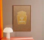 Patatine fritte dorate con "KEEP IT CRISPY alluminio dibond
