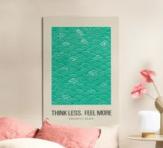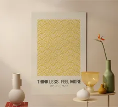 Questo poster combina un motivo di nuvole di ispirazione tradizionale con una moderna combinazione di colori corallo - morbidi, caldi e positivi. Il messaggio "Think Less. Feel More - Mindful Bliss" completa il disegno per creare un quadro d'insieme armonioso per ambienti pieni di leggerezza. Ideale per camere da letto, spazi abitativi luminosi o oasi creative che intendono irradiare gioia e consapevolezza.