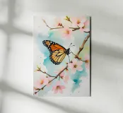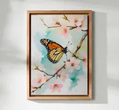 Pittura digitale di farfalla monarca e fiori di ciliegio alluminio dibond