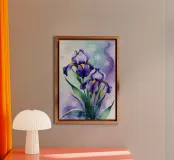 Pittura digitale di fiori di iris viola e fiocchi di neve alluminio dibond