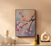 Pittura digitale minimalista con fiori di ciliegio alluminio dibond