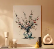 Pittura digitale minimalista di un fiore di ciliegio in un vaso alluminio dibond