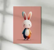 Questo magnifico poster per la cameretta di un bambino presenta un adorabile coniglietto dai toni arcobaleno, con grandi orecchie espressive e uno sguardo commovente negli occhi. Realizzata ad acquerello, questa illustrazione originale e poetica conferisce morbidezza, gioia e modernità a qualsiasi decorazione murale. Ideale per la cameretta di un bambino o di una bambina, aggiunge un tocco colorato e incantevole che stimola l'immaginazione. Perfetto anche come regalo per un bambino, questo poster piacerà a grandi e piccini.