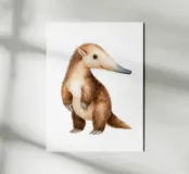 Un'affascinante illustrazione ad acquerello di un formichiere in piedi, dai colori tenui e naturali. Perfetto per la cameretta di un bambino o di una bambina, questo poster aggiunge un tocco caldo e originale a qualsiasi decorazione murale.