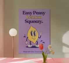 Sfacciato, colorato, limonoso: questo poster "Easy Peasy Lemon Squeezy" mette di buon umore qualsiasi parete. Con il viola vivace, il giallo brillante e la tipografia scritta a mano, questo disegno è un vero e proprio richiamo per la cucina, l'ufficio o la stanza dei bambini. Ideale per chi ama i colori, celebra gli agrumi o vuole fare una dichiarazione umoristica. Una stampa fresca per vibrazioni fresche!