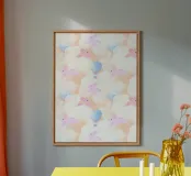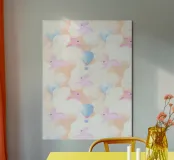 Rabbits in the rainbow clouds pastel gouache pattern paintin alluminio dibond