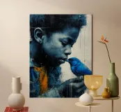 L'uccello blu rimase con Jim per tutto l'autunno. Ma quando cadde la prima neve, una mattina volò via. Jim era triste, ma nel profondo del suo cuore sapeva che l'uccello gli aveva dato qualcosa che sarebbe rimasto: coraggio, fiducia e un nuovo amico.