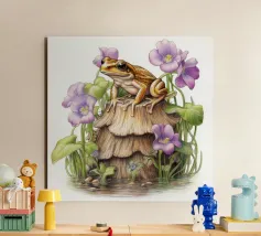 Un'illustrazione stravagante con una rana avventurosa e una lumaca curiosa, che abbracciano il fascino di un'amicizia improbabile. Con un tocco di meraviglia della natura, questo disegno cattura lo spirito giocoso dei compagni di bosco che esplorano insieme.
