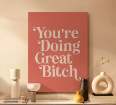 Accendete la vostra creatività con questa audace stampa tipografica, caratterizzata da una divertente scritta retro in maiuscolo e da un'allegra faccina sorridente. Lo sfondo rosso aggiunge un tocco di vivacità, rendendo questo pezzo un'aggiunta accattivante a qualsiasi spazio. Perfetta per uffici, studi o qualsiasi altro luogo in cui sia necessaria una ventata di ispirazione. Questa stampa serve a ricordare in modo giocoso di superare i limiti e creare qualcosa di straordinario. Il suo design di ispirazione rétro aggiunge un tocco di nostalgia, incoraggiando al contempo a pensare al futuro. Ideale per artisti, designer o chiunque voglia infondere nell'ambiente una dose di creatività.