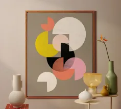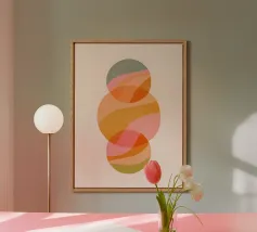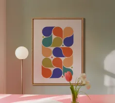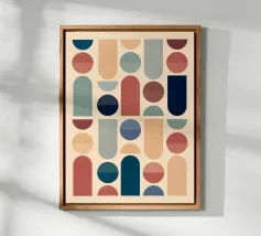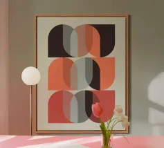 Un disegno astratto geometrico audace ma minimalista, caratterizzato da forme curve e intrecciate in una tavolozza di ispirazione rétro. Questa composizione moderna mescola texture morbide e toni terrosi, rendendola un pezzo perfetto per interni di metà secolo, decorazioni contemporanee e spazi artistici. Ideale per chi ama l'estetica vintage con un tocco moderno. Progettato da showmemars