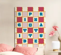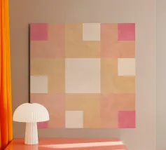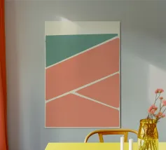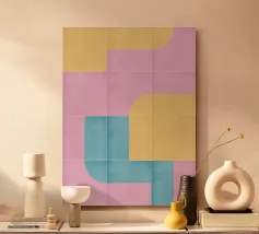 Motivo moderno di metà secolo ispirato ai pavimenti e ai murales in piastrelle di metà secolo. Linee slanciate, forme semplici, texture rumorosa e tavolozza di perle rosa.