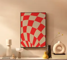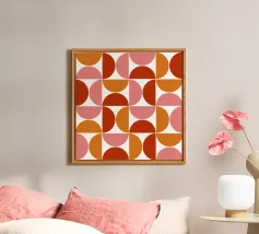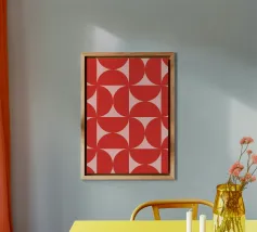 Retro Vibes | Pink & Red 70s-Inspired Art Print alluminio dibond con Cornice Artbox
