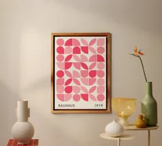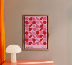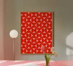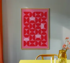 Questa stampa d'arte di tendenza combina forme audaci di colore rosa e rosso, strizzando l'occhio all'estetica del design degli anni Settanta. Con le sue forme geometriche giocose e i colori vivaci, questo pezzo porta un tocco retrò al vostro spazio, pur mantenendo un tocco moderno. Perfetta per tutti coloro che amano mescolare le vibrazioni vintage con lo stile contemporaneo, questa stampa si impone in qualsiasi ambiente.