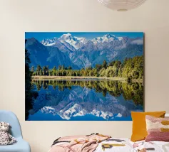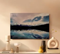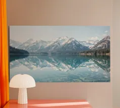 Riflesso stupefacente di montagne innevate in un ambiente tranquillo. alluminio dibond