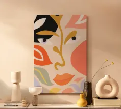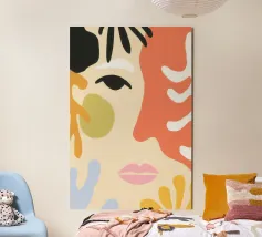 Il ritratto astratto di un volto è creato con linee blu fluide e ondulate su uno sfondo bicolore, dando vita a un'opera d'arte fluida, espressiva e moderna.