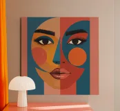 Ritratto astratto diviso da forme geometriche e colore alluminio dibond