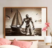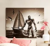 ROBOT AVEC VOILIER. Sépia alluminio dibond