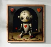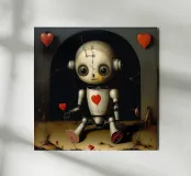 Robot con un cuore_11 alluminio dibond con Cornice Artbox