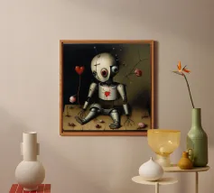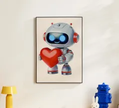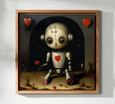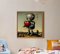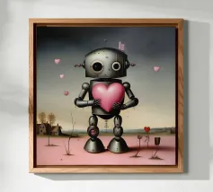 Robot con un cuore_14 alluminio dibond con Cornice Artbox