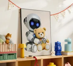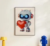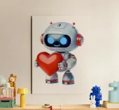 Robot con un cuore alluminio dibond con Cornice Artbox