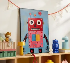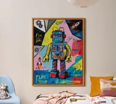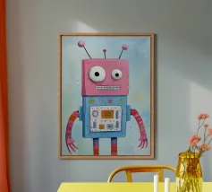 Ravvivate qualsiasi stanza con questo allegro robot da parete! Caratterizzato da un sorridente robot blu con uno sfondo rosa, questo disegno vivace e giocoso è perfetto per stimolare la gioia e la creatività. Esposta in una cameretta, in una stanza dei giochi o in un'aula scolastica, questa opera d'arte aggiunge un'atmosfera divertente e fantasiosa a qualsiasi spazio. Immaginate questo poster di un robot felice sulla parete di una cameretta giocosa, che illumina una classe o che ispira divertimento nell'angolo creativo di un bambino. I suoi colori vivaci e l'atmosfera allegra lo rendono un'aggiunta coinvolgente a qualsiasi spazio.
