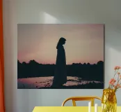 sagoma di una ragazza in piedi in camicia da notte alluminio dibond