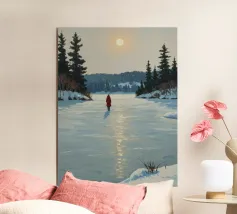 sagoma di una ragazza in piedi in un campo di neve alluminio dibond