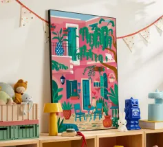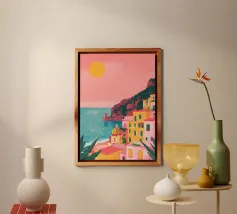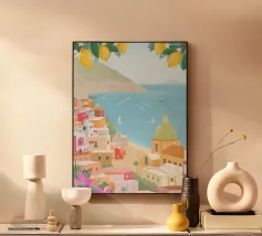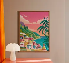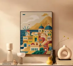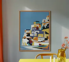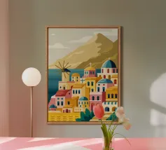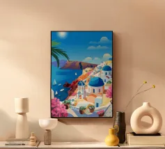 Santorini Rooftop View alluminio dibond con Cornice Artbox