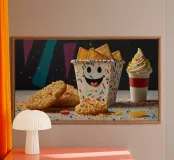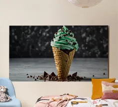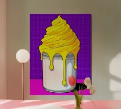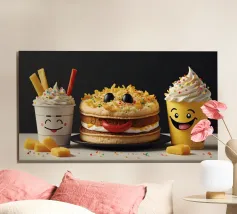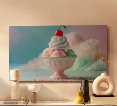scena del dessert con un allegro contenitore pieno di alluminio dibond