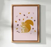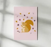 Un simpatico scoiattolo geometrico gioca tra le foglie che cadono e le ghiande, nei toni tenui del rosa e del miele. Minimalista e dall'aspetto scandinavo, questo motivo porta pace e calore nelle camere dei bambini e negli spazi abitativi autunnali. Perfetto come poster o stampa d'arte incorniciata.