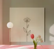 Semplice disegno a linee nere di un fiore con foglie su una luce alluminio dibond