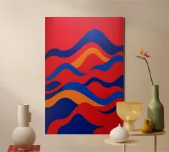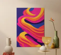 Un audace motivo astratto con un tocco di energia dinamica che simboleggia il movimento e la fluidità. Colori vivaci che evocano temi come l'acqua, la vita e il movimento. Una fusione innovativa di tradizione e modernità per interni contemporanei e minimalisti. Un linguaggio visivo unico che supera i confini culturali.