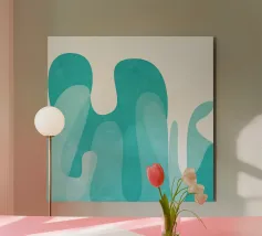 Un audace motivo astratto con un tocco di energia dinamica che simboleggia il movimento e la fluidità. Colori vivaci che evocano temi come l'acqua, la vita e il movimento. Una fusione innovativa di tradizione e modernità per interni contemporanei e minimalisti. Un linguaggio visivo unico che supera i confini culturali.