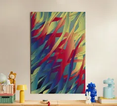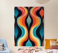 Un audace motivo astratto con un tocco di energia dinamica che simboleggia il movimento e la fluidità. Colori vivaci che evocano temi come l'acqua, la vita e il movimento. Una fusione innovativa di tradizione e modernità per interni contemporanei e minimalisti. Un linguaggio visivo unico che supera i confini culturali.
