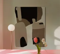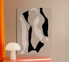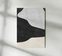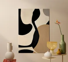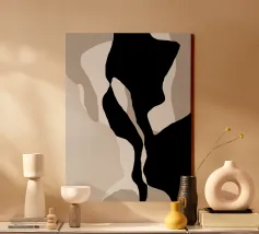 Forme organiche in nero, marrone, beige e colori neutri in un'opera d'arte contemporanea e minimalista adatta a interni moderni, scandinavi e in stile japandi.