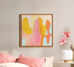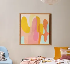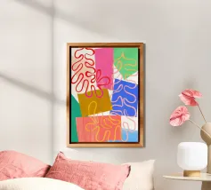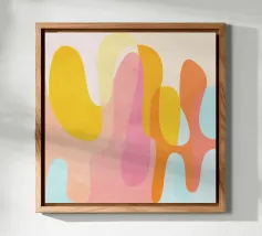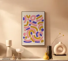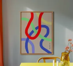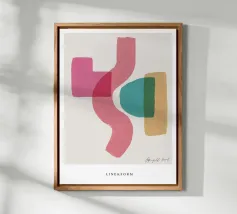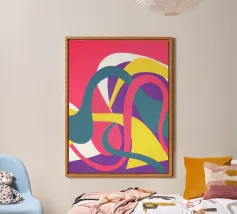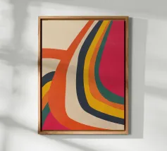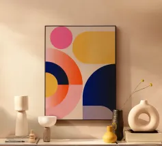 Cerchi, linee, movimento: Questo poster astratto combina forme giocose con colori audaci in rosa, arancione e blu. La composizione è dinamica, leggera e piena di energia, come una danza visiva di colori e forme. Ideale per interni moderni, spazi di lavoro creativi o amanti del design con il coraggio di abbracciare il colore.