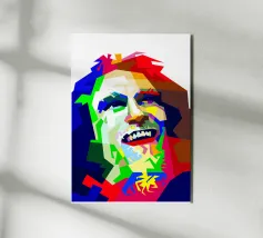 Un ritratto vibrante e geometrico di Sinead O'Connor in stile WPAP, caratterizzato da forme audaci e angolari e da un'impressionante gamma di colori vivaci e contrastanti. L'opera cattura i suoi tratti iconici, come la testa rasata, gli occhi penetranti e la forte espressione facciale, utilizzando blocchi di colore nitidi e frammentati. La composizione enfatizza la profondità e l'emozione mantenendo l'estetica pop-art cubista distintiva di WPAP, creando un tributo visivamente dinamico e moderno alla leggendaria cantante.