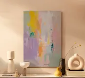 "Soft Collision" cattura la tensione poetica tra caos e calma in una sinfonia di pennellate pastello. Gli strati strutturati a olio mescolano lavanda, pesca, menta e giallo caldo in una danza di luce e morbidezza. Quest'opera d'arte conferisce un'energia rilassante e moderna a qualsiasi spazio, perfetta per gli interni che cercano di combinare emozione ed eleganza. Ideale per soggiorni, studi creativi o nursery contemporanee, questo pezzo irradia minimalismo e complessità.