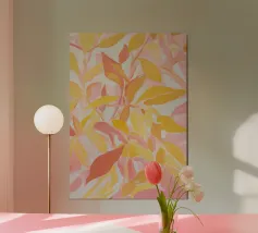 Toni tenui di albicocca e rosa. Stile: Acrilico astratto