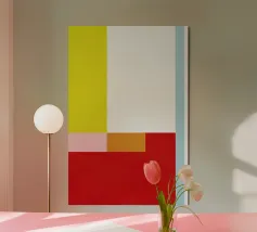 Forme geometriche di varie tonalità e colori sono disposte in modo astratto. Le transizioni fluide tra le forme e la palette di colori armoniosa creano una composizione rilassante.